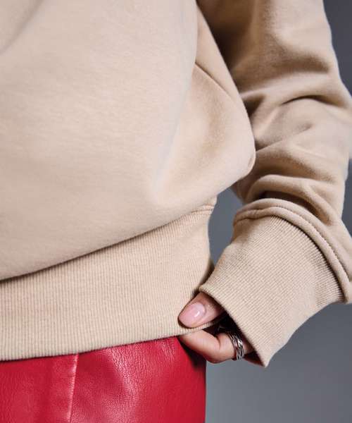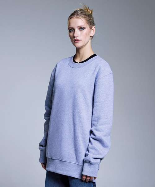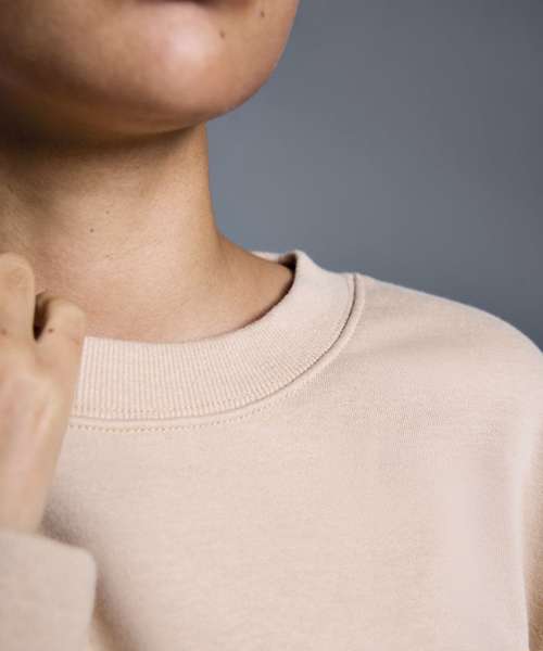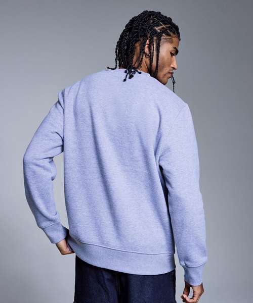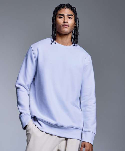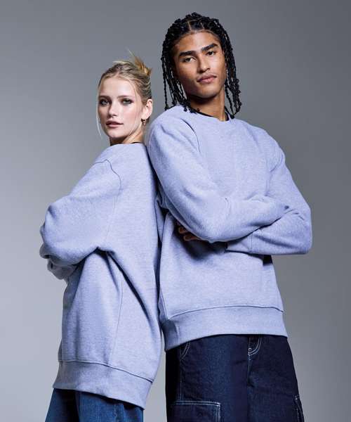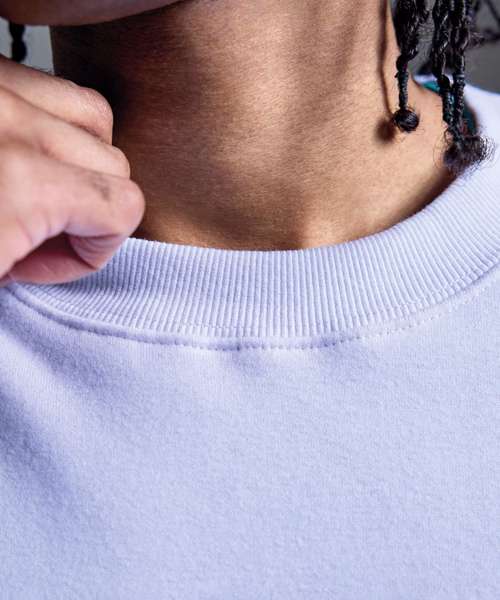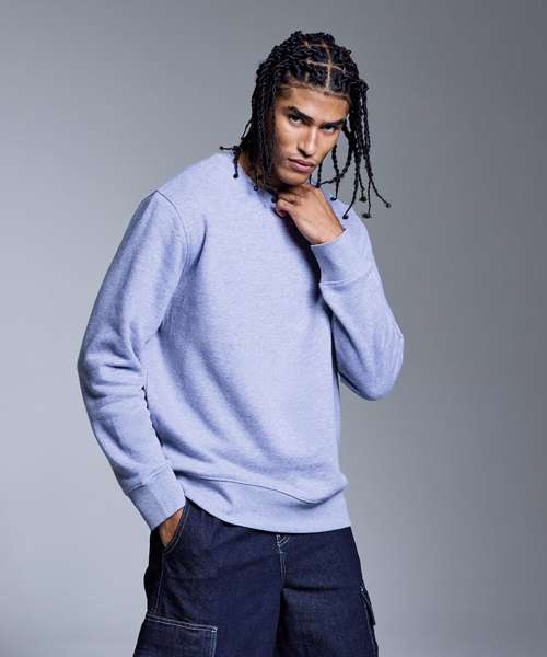 Soft hand feel. Ribbed crew neck. Brushed inner fleece. Twin-needle detail. Cut-and-sew 2x1 ribbed cuffs and hem. Self-coloured neck size label. Relaxed fit.