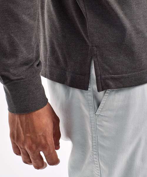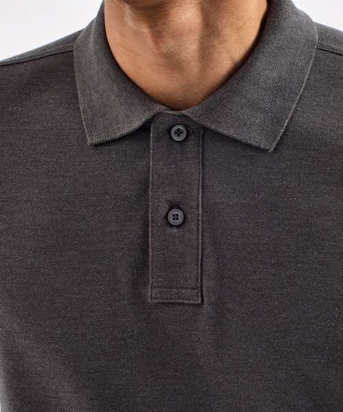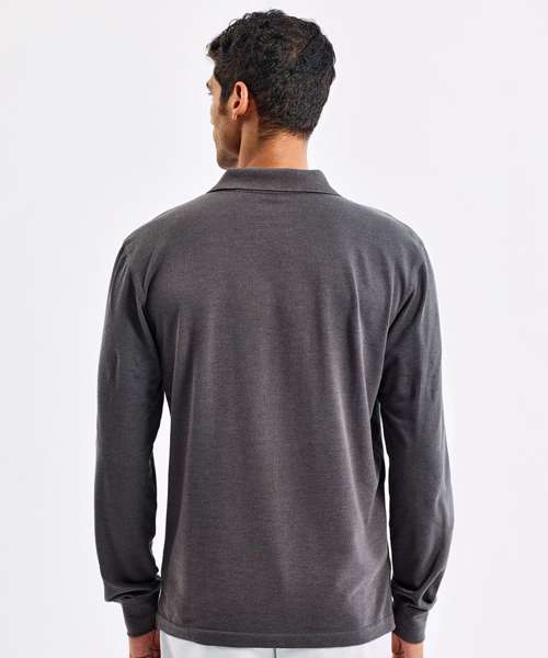 Long sleeved polo shirt styled for men. Knitted cuff and collar detail. Two button placket. Side vents. Machine washable. Product contains no branded neck label. Removable Kimble or looped garment tags. Inner seam label holds important product information on one label with a second label containing brand information which can be cut-away. Please note old stock may contain a fixed branded label.