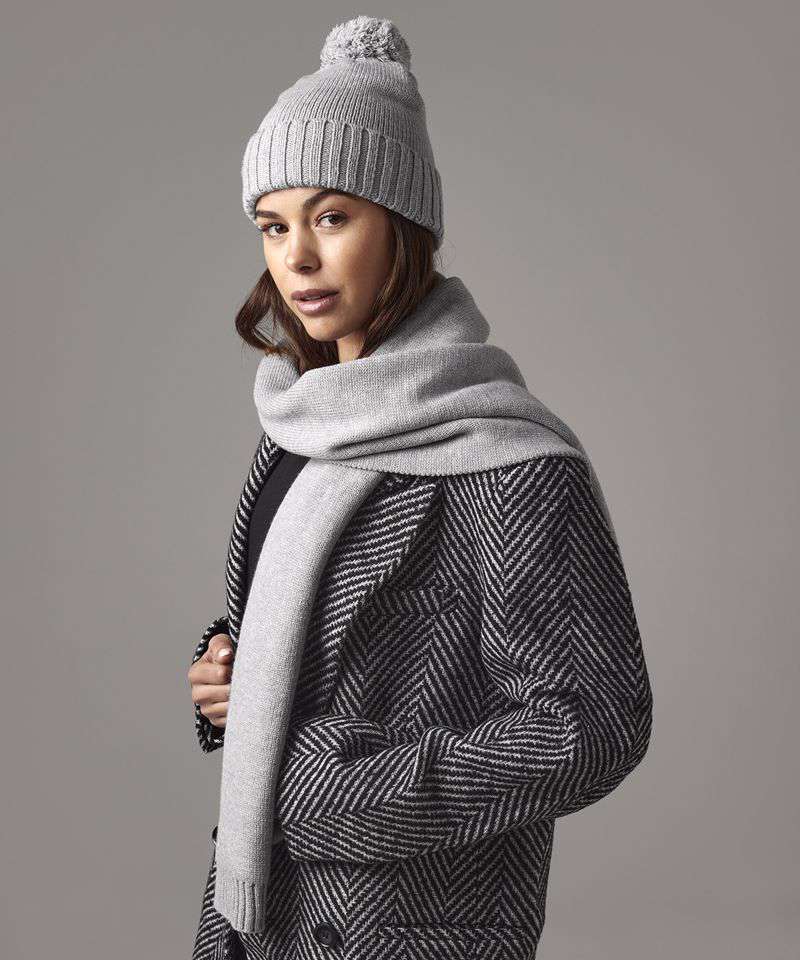 Luxury soft-touch yarn. Single-layer knit. Self-coloured pom pom beanie. Ribbed cuff beanie. Two-piece set. Perfect for seasonal gifting. Belly band included for personalised gifting. TearAway label for ease of rebranding.