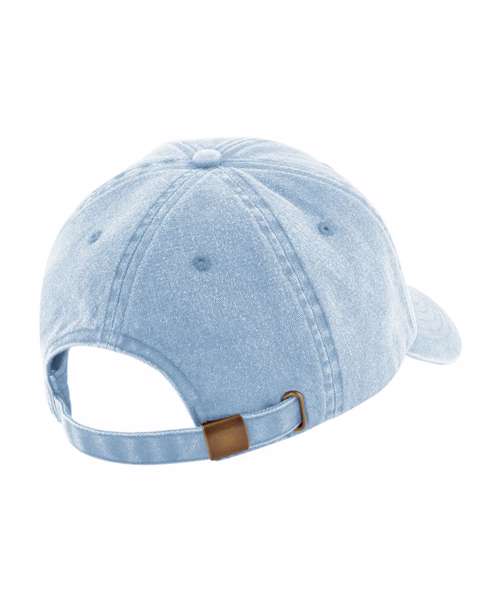 Vintage styling. Low-profile 6-panel design. Soft, unstructured crown. Pre-curved peak. Stitched ventilation eyelets. Child-safe secure button. Self-fabric strap with brass-effect buckle. TearAway label for easy rebranding.