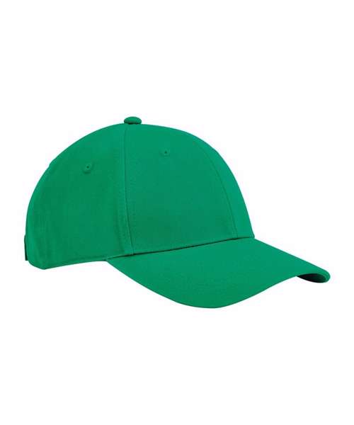 Contains 100% certified, organically grown cotton. Ventilation eyelets. 6-panel design. Child-safe secure button. Rip-Strip™ size adjuster. TearAway label for ease of rebranding.
