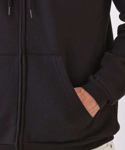 Hooded full zip sweatshirt with "B&C No Label" solution for easy rebranding. Versatile style designed for all types of activity.