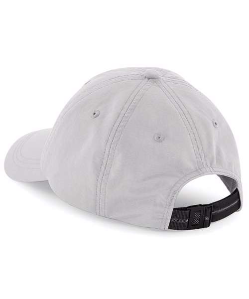 100% Polyester Coolmax® fabric sweatband. TearAway label for ease of rebranding. 6 panel design. Pre-curved peak. Waterproof and breathable fabric. Adjustable webbing and clip closure.