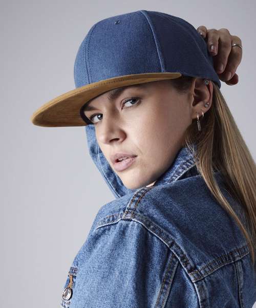 TearAway label for ease of rebranding. Faux suede flat peak. Retro style snapback size adjuster. Stitched ventilation eyelets. 6-panel design.
