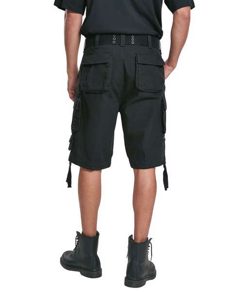 Cargo shorts, used look, included belt, wide leg, leg pockets, 2 attached mini-pockets.