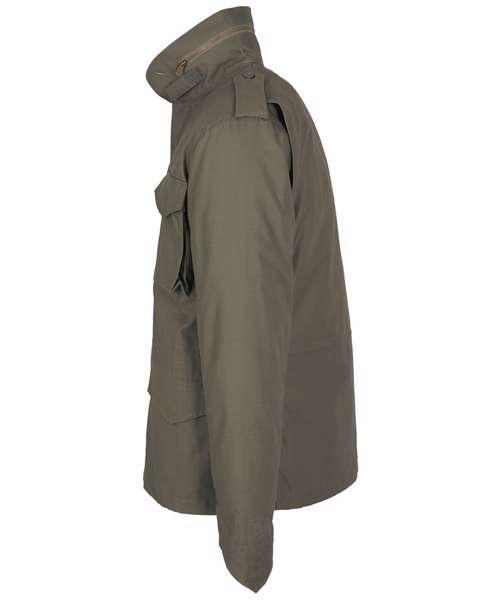 The M65 Standard in vintage style has a real cult characteristic. It is the classic field jacket. Typically M65 has 2 big chest pockets, 2 spacious flap pockets on the front, a covered cotton hood with drawstring, complete with poppers on the shoulder. Water-repellent and durable material. The function of the jacket offers removable lining.