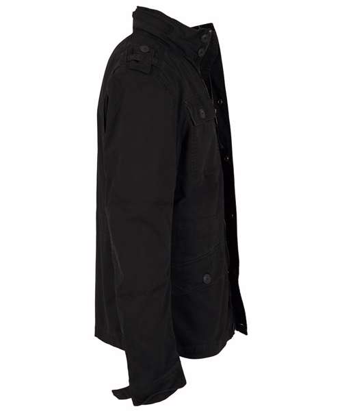 Field jacket, used effects, logo badge, hidden hood in the collar, stand-up collar with fake leather application (100% polyurethane).
