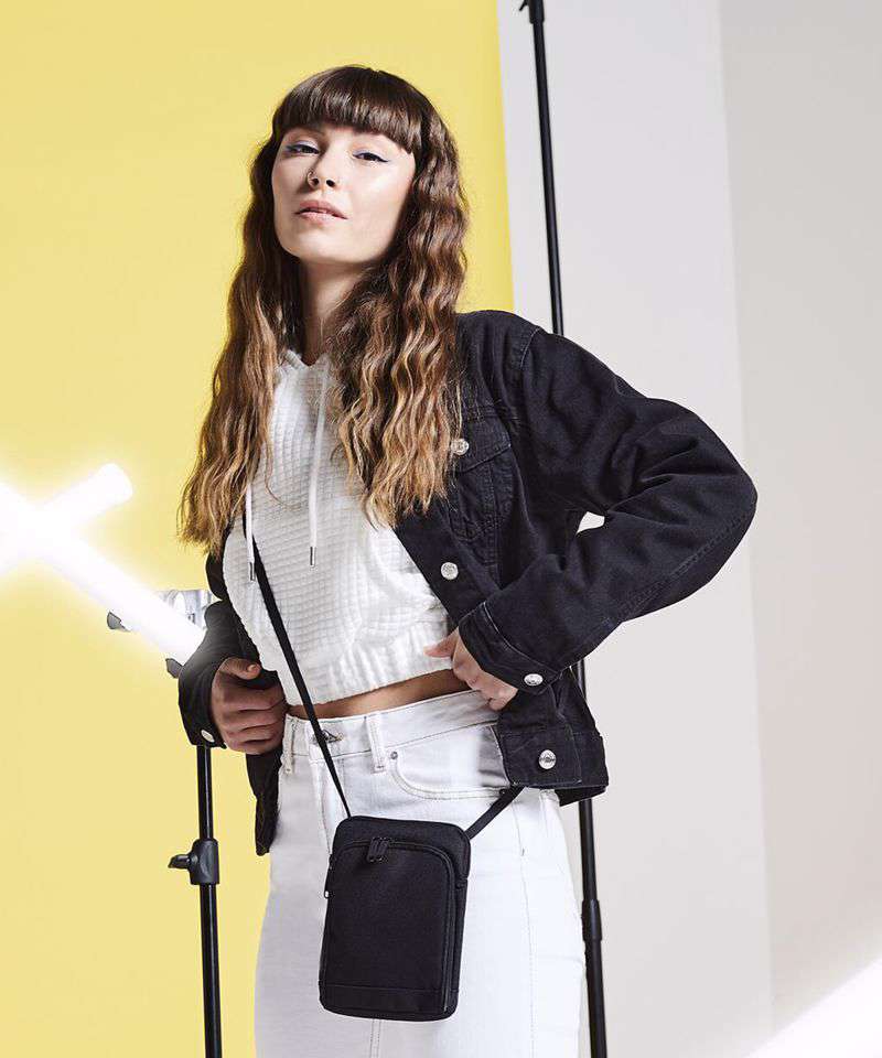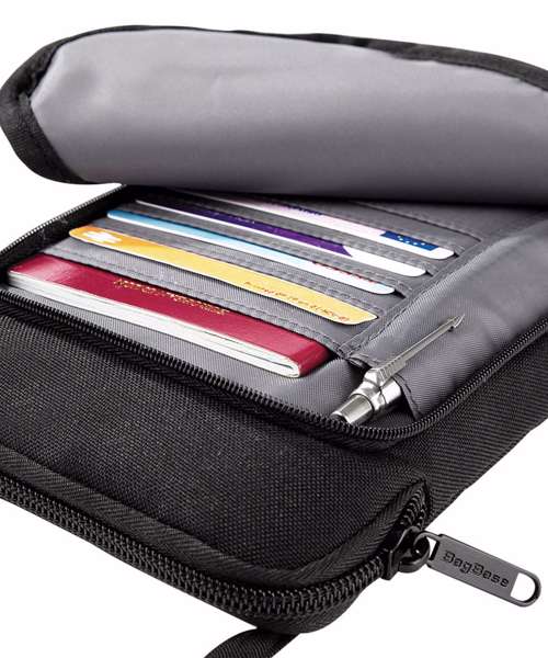 Hideaway adjustable neck cord. Smartphone compatible. Padded main compartment. Passport pocket. Organiser section.