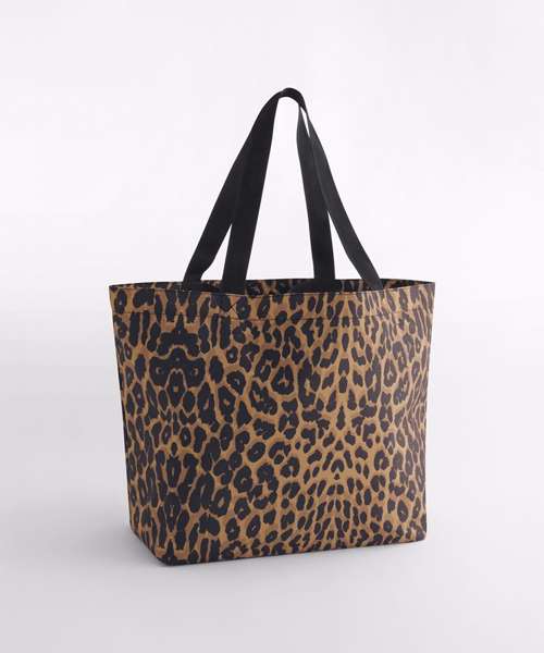 Leopard print design. Internal zipped pocket. Lining with hidden zip access for decoration. Press stud closure. Grab handle with press stud closure. Can be carried by hand or over the shoulder. Tear-away label for ease of rebranding.Contains 100% GRS-certified recycled polyester, certified by Control Union CU811033.