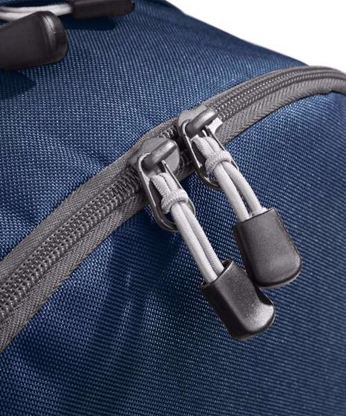 TearAway label for ease of rebranding. Water-resistant fabric. Dual compartment design. Laptop compatible up to 15.6". Padded laptop compartment. Media pocket and headphone port. Padded adjustable shoulder straps. Wet pocket. Compression straps. Padded back panel. Organiser section. Elasticated bottle loop. Metal ventilation eyelets. Grab handle.