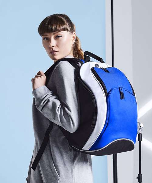 - Padded adjustable shoulder strapsMedia pocket and headphone portWater bottle pocket