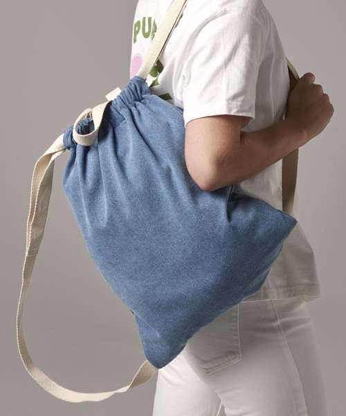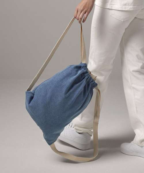 The denim gymsac offers a relaxed aesthetic and can be carried by hand or over the shoulder. With a focus on soft textures and ample space for surface decoration, this denim, drawstring bag adds instant cool to any casual accessories collection.
