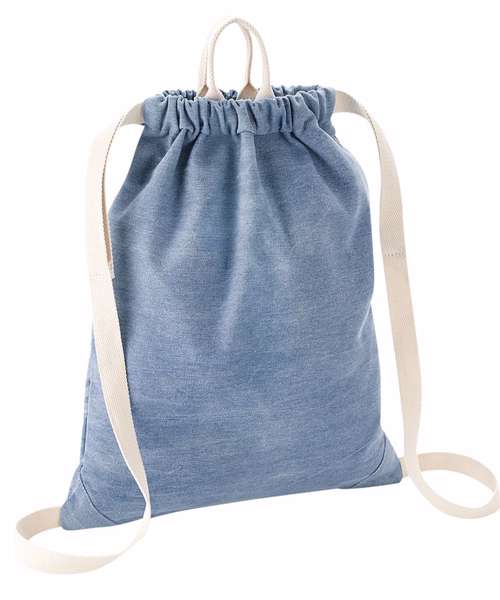 TearAway label for ease of rebranding. Dual-purpose grab handle/ hanging loops. Drawcord closure. Cotton webbing shoulder straps. Can be carried by hand or backpack style.