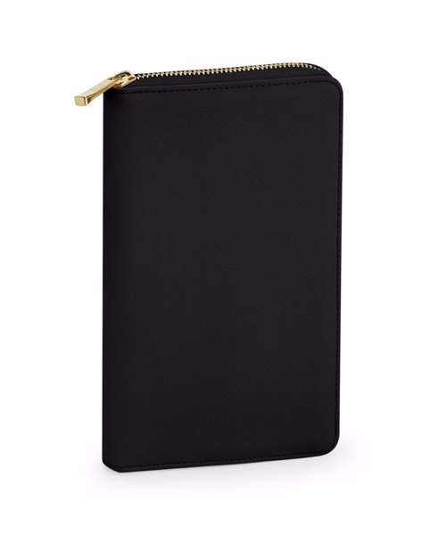 Protective velvet lining. Saffiano fine grain. Necklace compartment. Four secure necklace hooks. Detachable earring organiser. Ring holder. Two secure zip pockets. High-shine gold metal zip. Designed to store rings, earrings and necklaces.