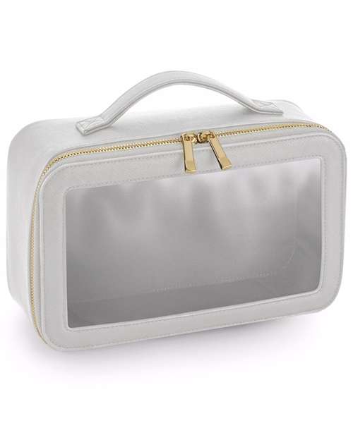 Every product in our Boutique collection combines soft, fine grain Saffiano fabric and high-shine hardware for a premium finish that elevates personalisation and gifting. Transporting toiletries and essentials is elegant and effortless with BG764, which features a handy see-all clear window that also provides the perfect space for decoration.
