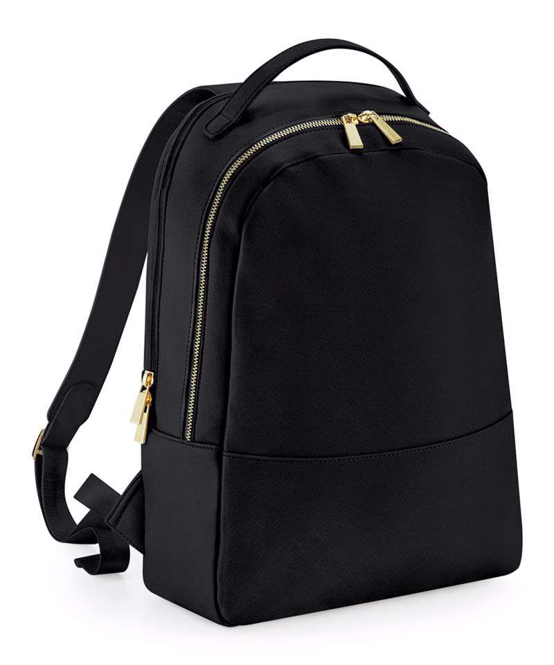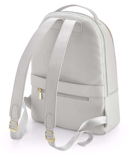 Saffiano fine grain. Zipped main compartment. Internal organisation pocket. Internal water bottle holder. Discreet zipped back panel pocket. Zipped internal valuables pocket. Soft-touch lining. High shine gold metal zips. Wheeled luggage handle strap. Self-fabric adjustable shoulder straps. Grab handle. TearAway label for ease of rebranding.