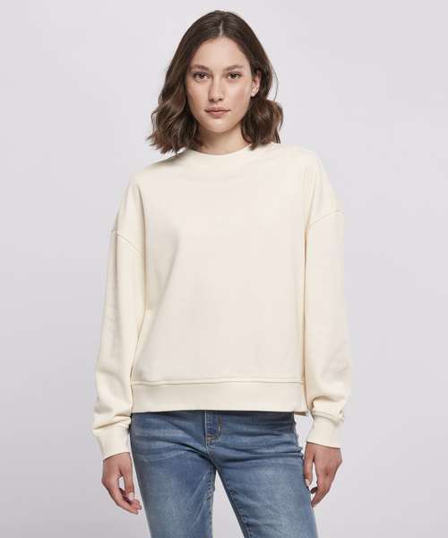 Designed as a comfy, oversize fit with dropped shoulders, this women’s long sleeve shirt is an instant classic. The used cotton and polyester fabric ensures a cosy wearing experience. Furthermore, the fabric is suitable for further refining with flock and screen printing or embroidery. The supple women’s sweater offers a ribbed crew neck and wide rib cuffs on sleeves and hem that complete its feminine style.