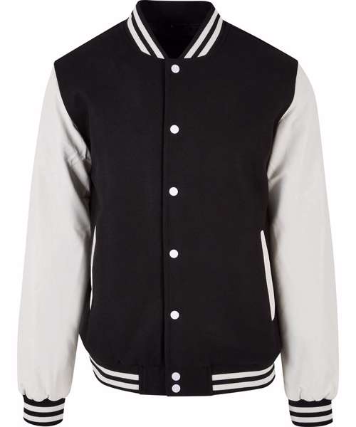 Equipped with contrasting sleeves, this men’s college jacket exudes retro vibes. Classic details such as a snap button placket, striped stand-up collar, hem and cuffs complete the look. Its design is rounded off by colour-accentuated side pockets and rib cuffs. The fabric consist of wool and viscose to ensure comfort in this regular cut. The jacket can further be refined via embroidery.