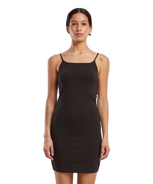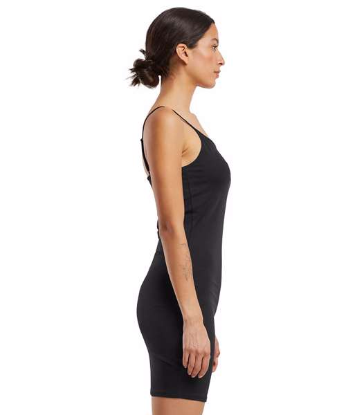 Elegant, sleeveless design for timeless style. Flattering slim fit enhances natural curves. Comfortable stretch Jersey ensures easy movement. Versatile A-line cut suits any occasion. Chic strap neckline offers modern appeal.