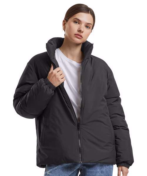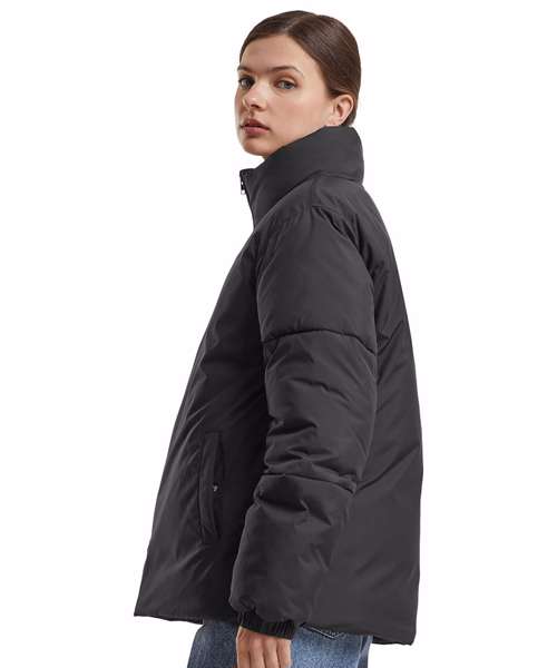 Introducing the Women’s loose puffer jacket – the perfect blend of style and functionality for the winter season. This regular-fit jacket is designed to provide optimal comfort and warmth without compromising on fashion. The collarless design offers a sleek and modern look, while the long set-in sleeves ensure full coverage against the cold. Featuring a secure zip closure, this jacket promises to keep out the chill effectively. The absence of overlapping closures enhances its streamlined silhouette, making it an ideal choice for those seeking simplicity with elegance. Adorned with a subtle logo pattern, it adds a touch of sophistication and brand identity without being overly bold. Crafted specifically for women, this puffer jacket combines practicality with contemporary style, ensuring a cosy and chic experience throughout the colder months. Whether heading out for a casual day or layering up for more formal occasions, this versatile piece seamlessly integrates with any wardrobe, offering protection from the elements and an effortlessly stylish appearance.