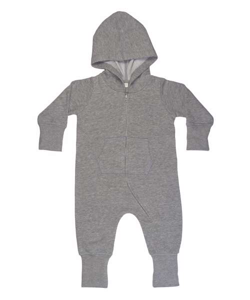 Soft and cosy baby all-in-one with brushed inside and 3/4 length zip for ease of dressing. Extra long cuffs can be worn folded down or back as baby grows. Seam free back for optimal decoration potential.