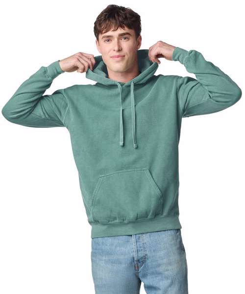 Made with 100% soft ringspun US cotton face for enhanced printing. Jersey-lined hood with colour-matched flat cord. Back neck patch for easy customisation. Rolled-forward shoulder. Pouch pocket. Relaxed fit, side-seamed body. 1x1 rib cuffs and waistband with spandex for enhanced stretch and recovery. Signature twill label and back neck twill tape. Made with OEKO-TEX Standard 100 certified low-impact dyes. Clean pigment dye colours are salt-free.