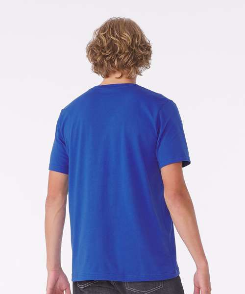 This updated unisex essential fits like a well-loved favourite, featuring a classic v-neck, short sleeves and superior combed and ringspun cotton that acts as the best blank canvas for printing. Available in a variety of solid, marble, neon, heather cvc, slub and mineral wash colours.