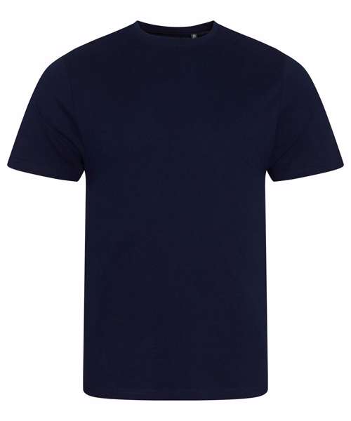 100% Organic cotton. Single Jersey. Ribbed collar. Taped neck. Side seams – non tubular body. Twin-needle detail at hem and sleeve. Set-in sleeves. Crewneck. Fashion fit. Size label only for easy rebranding.
