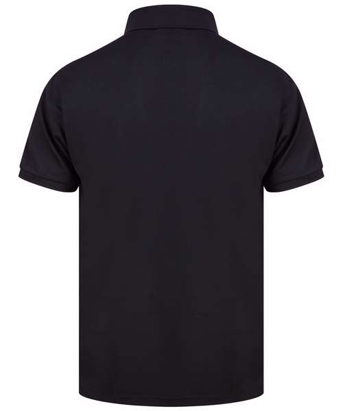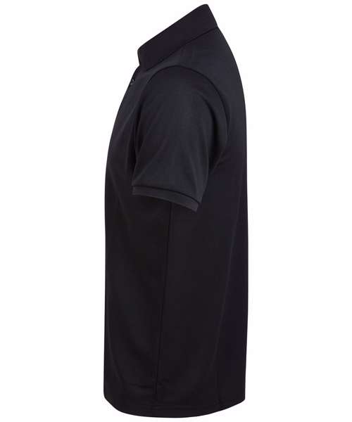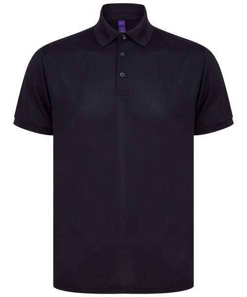 Polo shirt made from recycled polyester yarn with wicking properties. Regular fit with 3 button placket. Henbury stand-up collar. 1x1 ribbed collar and cuffs. Dyed to match buttons.