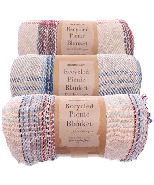 This recycled cotton picnic blanket is perfect for enjoying a day out at the beach or a relaxing picnic in the park. Each blanket is made from recycled materials, so colour and design may vary.