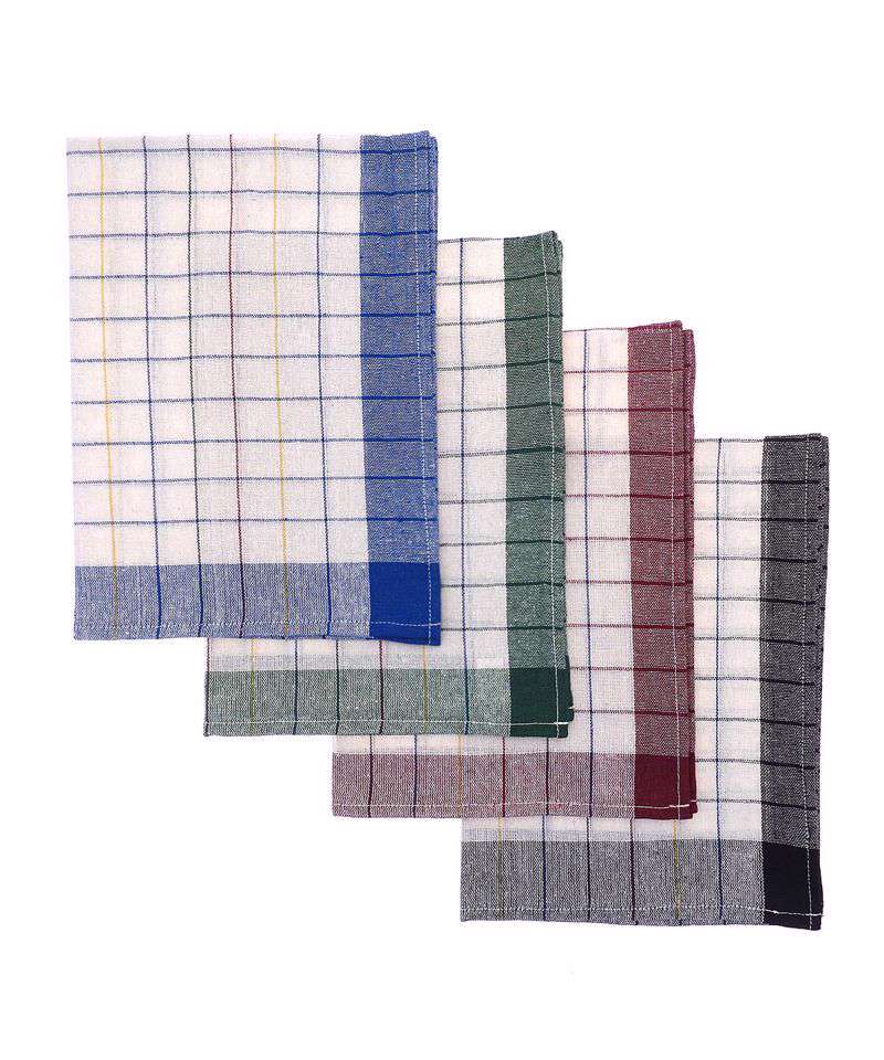 Pack of 10 durable and absorbent tea towels (80% cotton, 20% polyester).
