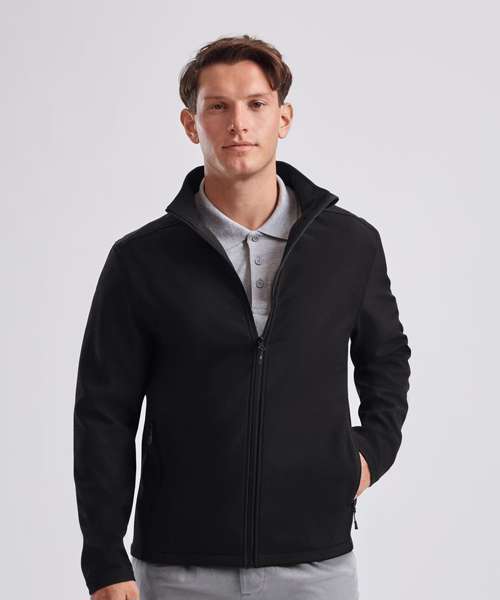The Essential softshell jacket is a two-layer softshell jacket in a classic design. The outer face material is made from 94% recycled polyester and 6% elastane, while the fleece lining is 100% recycled polyester. This jacket is treated with a fluorine and PFC-free finish from the BIONIC-FINISH® ECO brand. The Essential softshell jacket is the perfect companion for cooler days and an absolute must-have for modern corporate and promotional clothing.