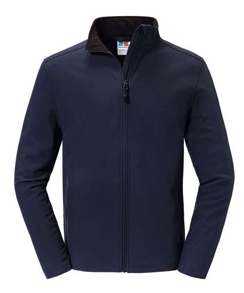 Classic fit. Bonded two-layer softshell material with water-repellent BIONIC-FINISH® ECO treatment (fluorine and PFC-free). Outer face material and inner fleece lining made from recycled polyester. Cadet collar. Storm flap. Side pockets.