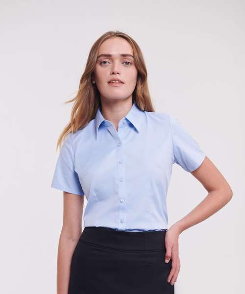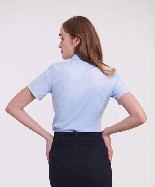 The first herringbone shirt to the imprint market. The ideal combination of style and durability, a contemporary alternative to the Oxford. Classic retail fabric. Easy care. No show through. Fitted fit. Neat, modern collar. Narrow width placket. Darts at chest, front and back hem.