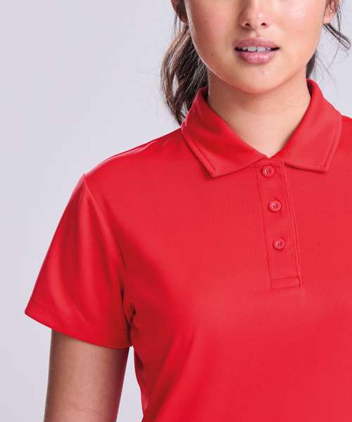 Girlie fit. Set-in-sleeve design. Self coloured buttons. AWDis' own Neoteric™ textured fabric with inherent wickability and quick drying properties. Self-fabric taped back neck. Twin needle stitching detail. Self-fabric collar with 3 button placket. Simple tear off label makes it perfect for rebranding. UPF 30+ UV protection.