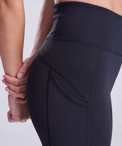 Four-way stretch for maximum movement. Side phone pockets. Adjustable waist cord. Back zip pocket. Ergonomic fit avoiding high-abrasion areas for maximum comfort. Made with recycled polyester.