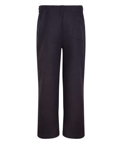 Oversized straight leg. Open hem. Thick elasticated waistband. Inner drawcord. Brushed inner fleece. Side pockets. Back patch pocket. Tear-away label. 100% cotton-faced fabric.