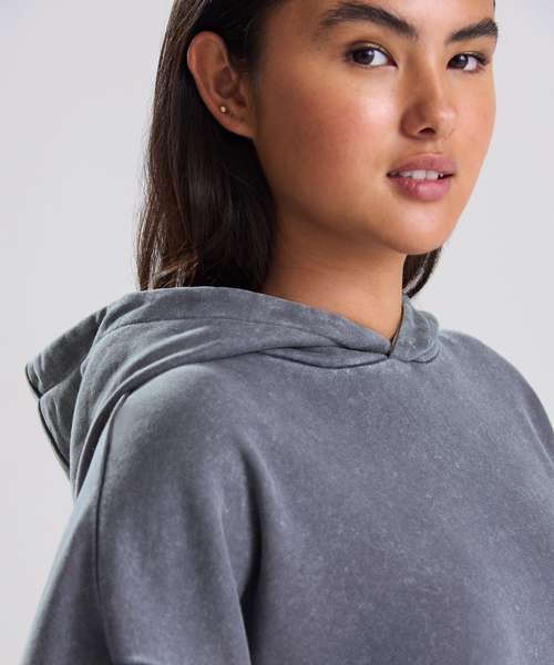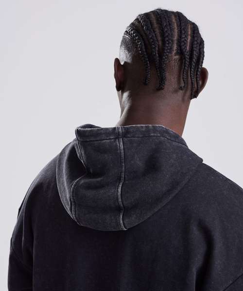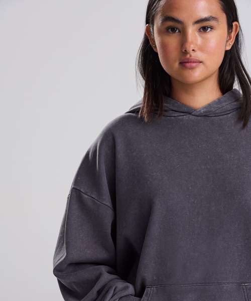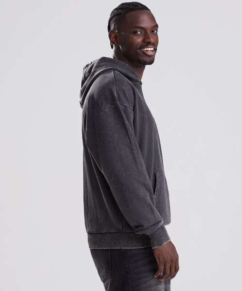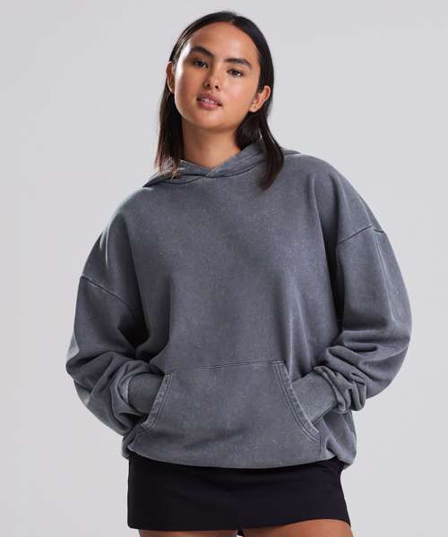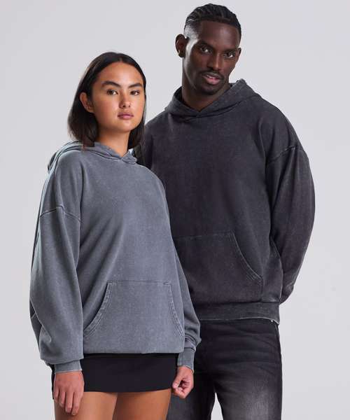 The Vintage washed hoodie combines an oversized fit with a washed finish for a street-ready look. Details include a double-layer hood, kangaroo pouch pocket and a French terry inner for everyday wear. Designed without drawcords for a clean silhouette, it features ribbed cuffs and hem, plus a locker patch and size label only – perfect for easy rebranding. Made with cotton and recycled polyester.