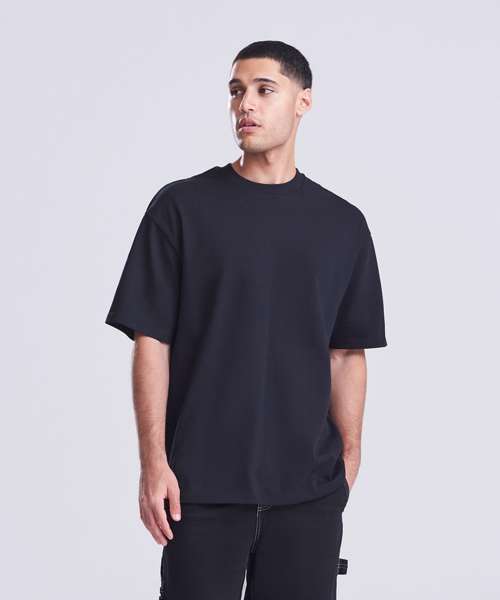 Oversized fit. Side seams. Ribbed crew neck. Set-in sleeve. Boxy shape. Taped back-neck. Excellent surface for print or embroidery.