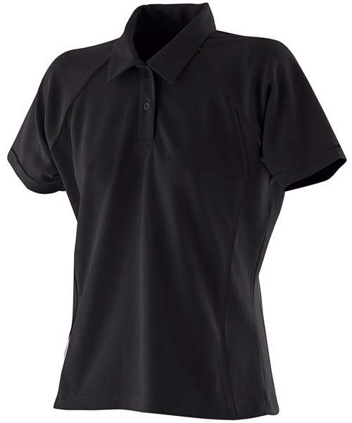 Made using Coolplus® specially modified polyester fibres enable rapid absorption of perspiration from skin surface. Contrast raglan panelling and cuffs with piping. 2 button placket with self fabric collar. Raglan sleeve.