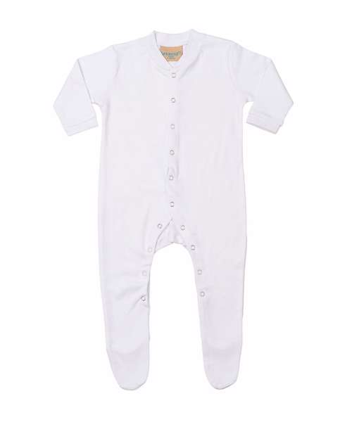 Long-sleeved sleepsuit with YKK popper opening and feet. Integral, feet.