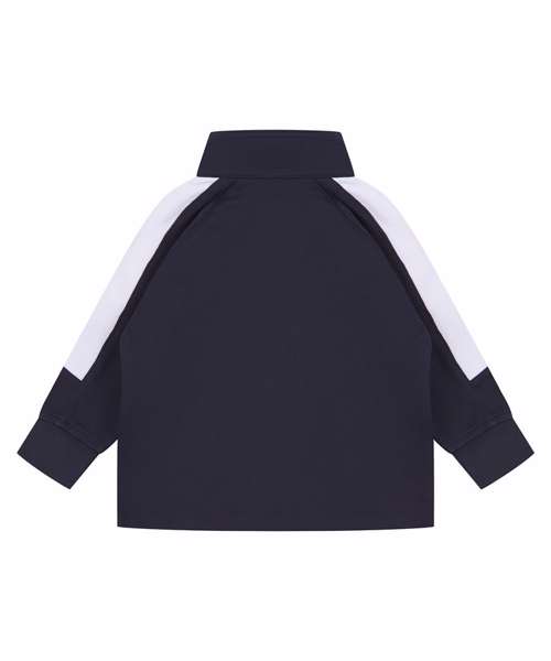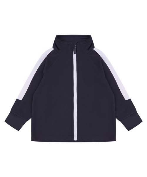 Kids track top with contrast panels down the arms and with a contrast zip. Ribbed cuff and hem.
