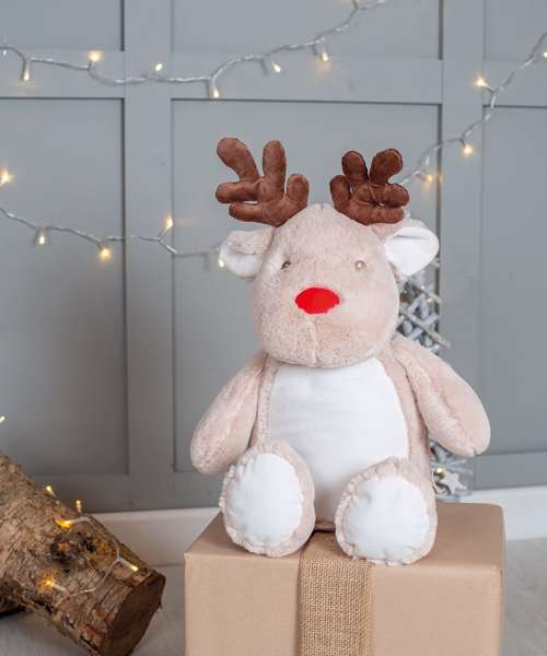 Santa's helper, the Zippie reindeer has soft fabric with a bright red nose and contrast antlers. Perfect for embroidery and sublimation printing with zip access at base.