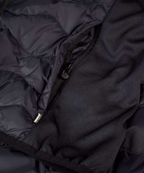 YKK Metalux main zip. Stretch fabric on sleeve and part of the body. 700 fill power. Water-repellent finish (Bionic Finish® ECO).