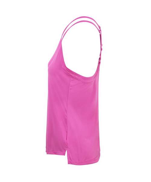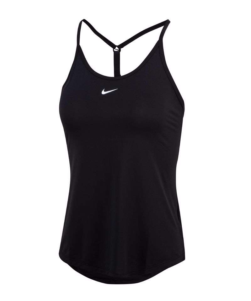 Nike Dri-FIT technology moves sweat away from your body for quicker evaporation, helping you stay dry and cool. Soft, smooth fabric curves down at the back hem for a little more coverage. Small side slits create extra give while you move. A fresh take on a classic Nike training tank, the design highlights your natural shape without feeling restrictive. Strap in back adjusts to help you find the perfect fit.