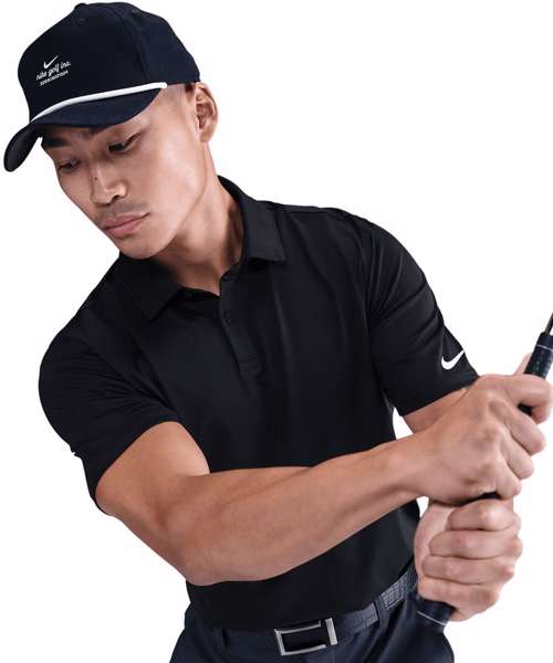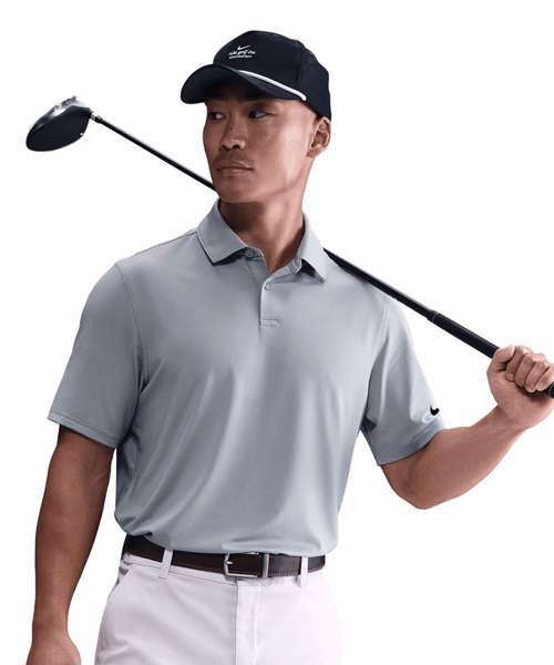 Two-button placket. Stretch Jersey fabric. Embroidered Swoosh logo. Machine wash.