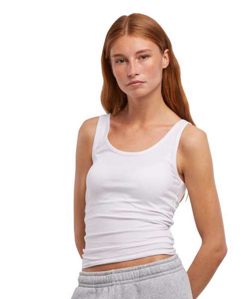The Women’s basic tank top is a timeless essential for every wardrobe. Made from elastic stretch Jersey, it adapts perfectly to the body and offers optimal wearer comfort. The classic cut makes it a versatile basic that can be worn under shirts or jackets, or simply styled solo on warm days. An indispensable and comfortable garment for every day. Made with materials from organic farming cotton.