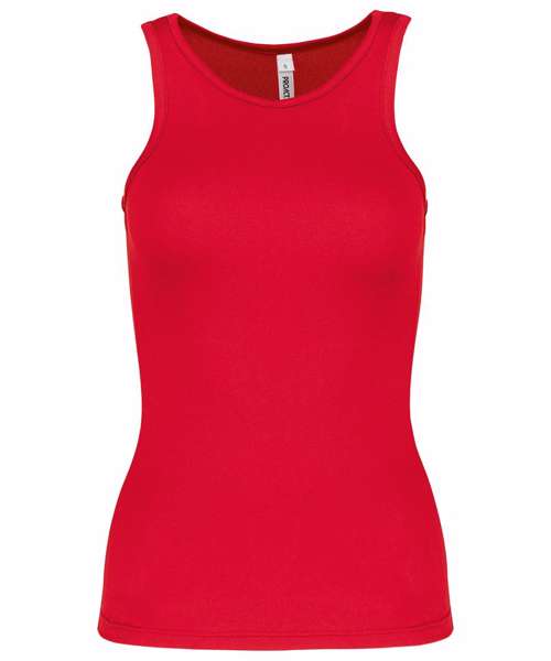 100% Polyester. Quick drying Lightweight fabric. Racer back style. Bound neck and armholes. Twin needle finishing. BSCI certified. Oeko-Tex certified.