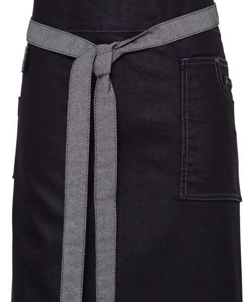 A mid-length waist apron boasting style accents from your favourite pair of jeans! An oversized patch pocket roomy enough for a tablet device with classic stitched pocket detail for styling. The waxed effect gives a tough, durable appearance with an industrial-chic feel that reflects the interior decor of many modern day restaurants.