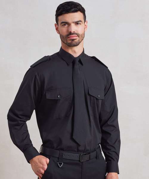 For those who require a more authoritative approach to their working uniform, this men's long sleeve Pilot shirt is ideal as it features tabs on the shoulders that can accommodate Epaulettes and has two button down chest pockets.